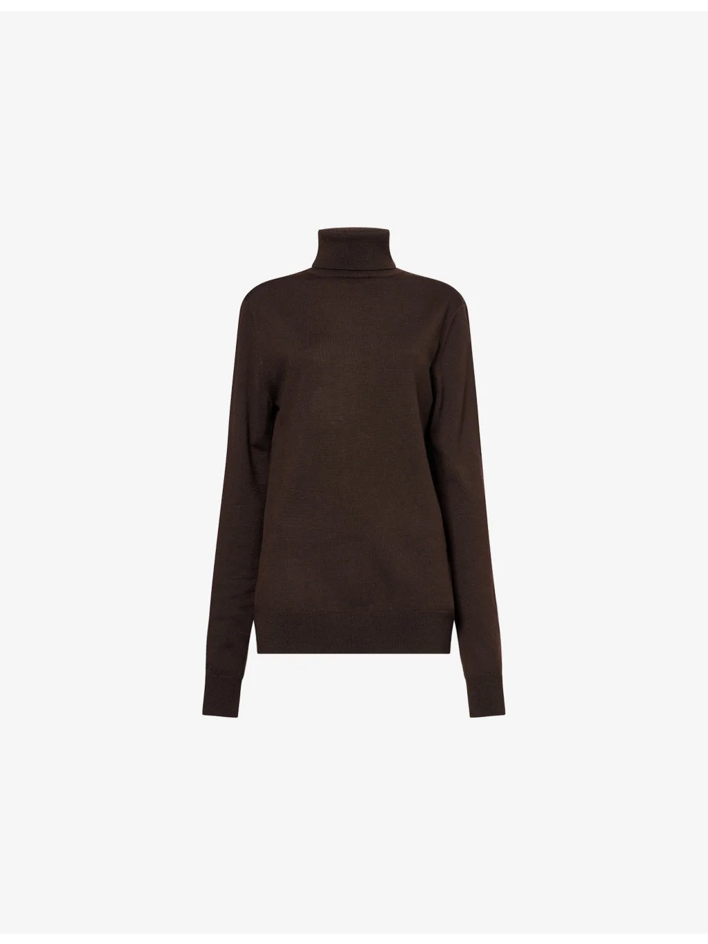 PRODUCT DETAILS - The Frankie Shop wool jumper - 100% merino wool - Relaxed fit, turtleneck, long sleeves, all-over fine-knit pattern, ribbed trims - Hand wash cold - True to size - Model is 5ft 10in/1.78m and wears a size small - Lightweight, stretchy Ref: R04546944