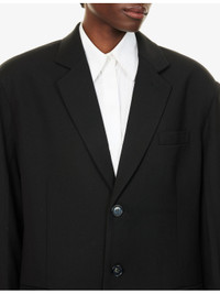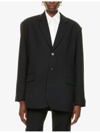 PRODUCT DETAILS - The Frankie Shop woven blazer - 65% lyocell, 25% rayon, 10% wool - Exposed button fastening at front - Oversized, single-breasted, notch lapels, padded shoulders, long sleeves, buttoned cuffs, welt pocket and two flap pockets at front, fully lined - Dry clean - True to size - Size small: length 32in / 81cm - Model is 5ft 10in/1.78m and wears a size small - Lightweight, stretchy Ref: R04500031