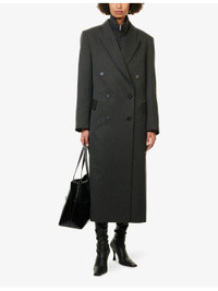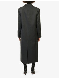 PRODUCT DETAILS - The Frankie Shop woven coat - 66% viscose, 24% polyester, 10% wool - Exposed button fastening at front - Regular fit, peak lapels, padded shoulders, long sleeves, buttoned cuffs, welt pocket at chest, flap pockets at front, slit at back, fully lined - Dry clean - Made in France - True to size - Size small: length 52.5in / 134cm, 47in / 120cm - Model is 5ft 10in/1.78m and wears a size small - Midweight, non-stretch Ref: R04546985