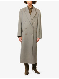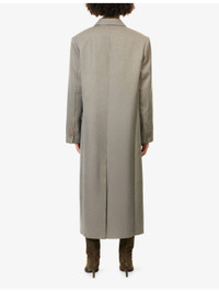 PRODUCT DETAILS - The Frankie Shop woven coat - 66% viscose, 24% polyester, 10% wool - Button fastening at front - Regular fit, peak lapels, padded shoulders, long sleeves, buttoned cuffs, welt pocket at chest, flap pockets at front, single vent at back, fully lined - Dry clean - Made in France - True to size - Size small: length 52.5in / 133.5cm - Model is 5ft 11in/1.80m and wears a size small - Midweight, non-stretch Ref: R04546986