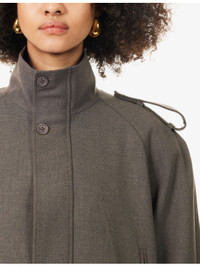 PRODUCT DETAILS - The Frankie Shop woven jacket - 63% polyester, 33% rayon, 4% elastane; lining 100% polyester - Zip fastening - Relaxed fit, stand collar, buttoned straps at shoulders, long sleeves, pockets at front, lined - Dry clean only - True to size - Size small: length 26.5in / 67cm - Model is 5ft 10in/1.78m and wears a size small - Midweight, non-stretch Ref: R04587190