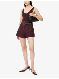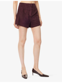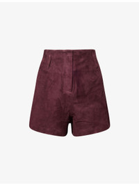 PRODUCT DETAILS - The Frankie Shop suede shorts - 100% suede - Button, hook-and-eye and zip-fly fastening - Regular fit, high rise, structured waistband with belt loops, slip pockets at front, brushed texture - Specialist leather clean - True to size - Size small: rise 14in / 36cm, inside leg 2.5in / 6.5cm, leg opening 28in / 71cm - Model is 5ft 10in/1.78m and wears a size small - Midweight, slight stretch Ref: R04499806