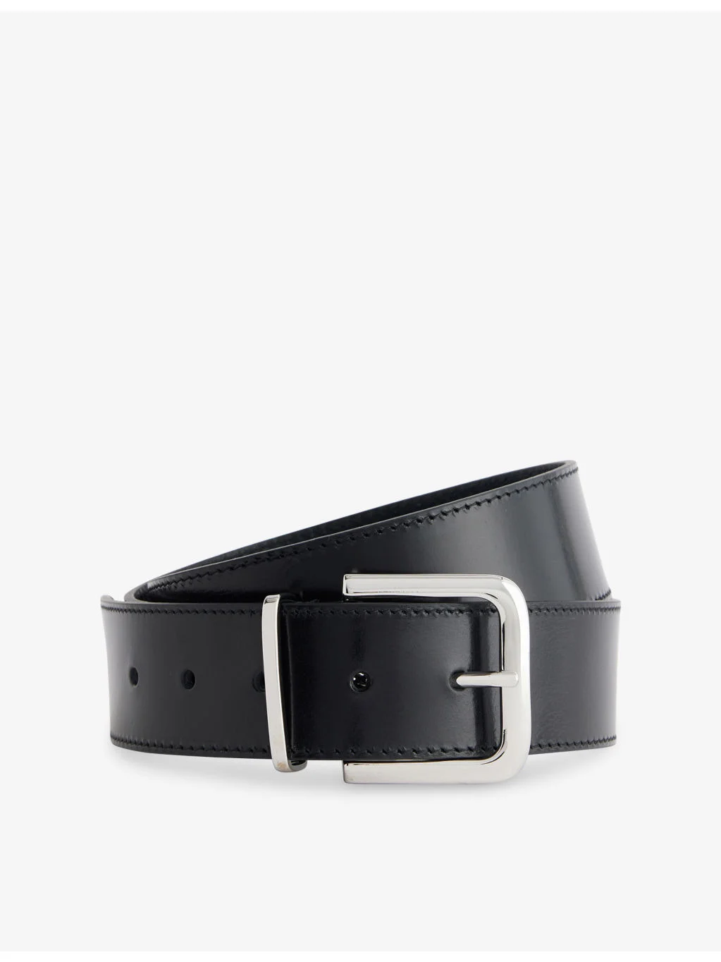 PRODUCT DETAILS - The Frankie Shop leather belt - 100% cow leather - Buckle fastening - Belt loop, five holes, all-over glossy smooth leather, silver-toned hardware, debossed branding at back - Specialist leather clean - Length: 96cm - Width: 4cm - Made in Italy Ref: R04546921