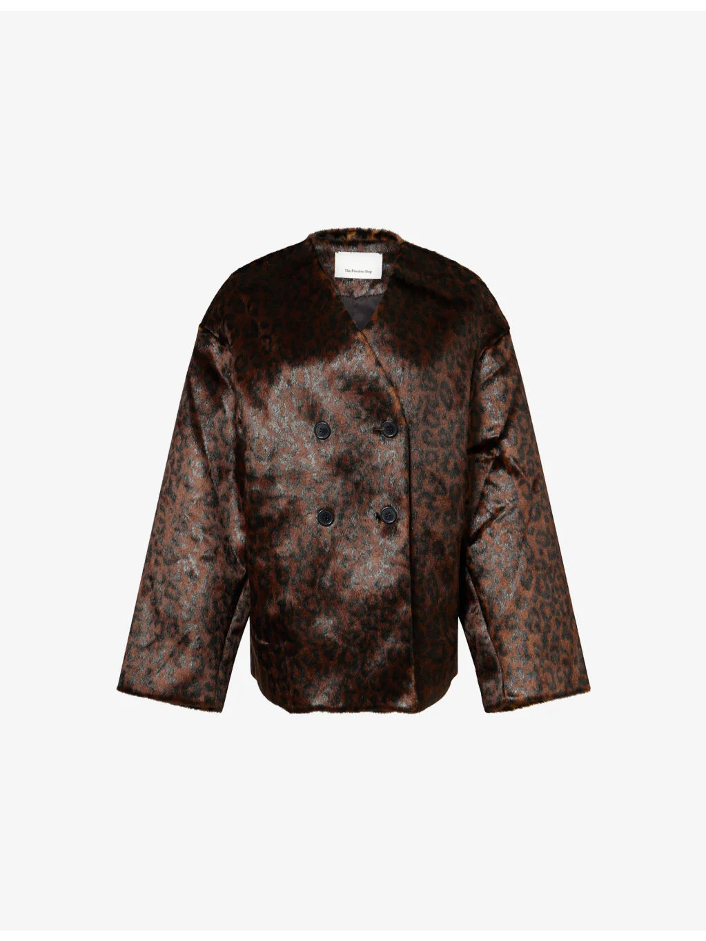 PRODUCT DETAILS - The Frankie Shop faux-fur coat - 100% modacrylic - Button fastening at front - Relaxed fit, V-neck, long sleeves, side slip pockets, all-over leopard pattern, slit at back, fully lined - Dry clean - True to size - Size small: length 30.5in / 78cm - Model is 5ft 10in/1.78m and wears a size small - Midweight, non-stretch Ref: R04547019