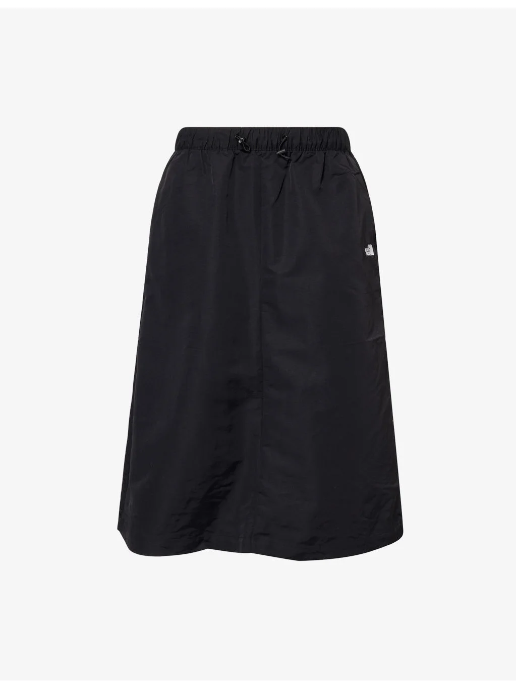 PRODUCT DETAILS - The North Face woven midi skirt - 100% nylon; pocketlining 100% polyester - Regular fit, A-line silhouette, high-waist, drawstring elasticated waistband, two slip pockets at front, embroidery at back, flared hem - Machine wash at 40°C - True to size - Size small: length 28in / 72cm - Model is 5ft 10in/1.78m and wears a size small - Lightweight, slight stretch Ref: R04603268