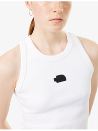 PRODUCT DETAILS - The North Face stretch-cotton top - 95% cotton, 5% elastane - Slim fit, round-neck, sleeveless, rubberised brand patch at front, all-over ribbed - Machine wash at 40°C - Made in Turkey - True to size - Model is 5ft 10in/1.78m and wears a size small - Lightweight, stretchy Ref: R04462824