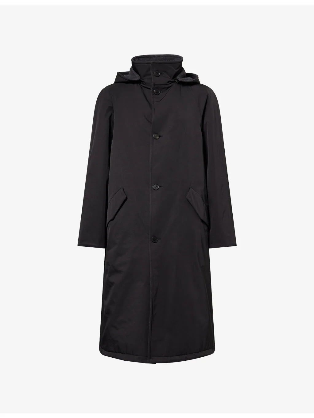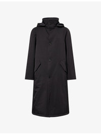 PRODUCT DETAILS - The Row cotton blend coat - 68% polyamide, 32% cotton; lining 100% wool - Exposed button fastening at front - Reversible, detachable hood, funnel neck, long sleeves, two flap pockets at front, drawstring hem, double-faced finish - Dry clean - Made in Italy - Size UK 40: length 48.8in / 124cm, chest 44.8in / 114cm - Model is 6ft 2in/1.88m and wears a size UK 40 - Midweight, non-stretch Ref: R04534214