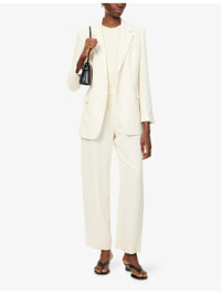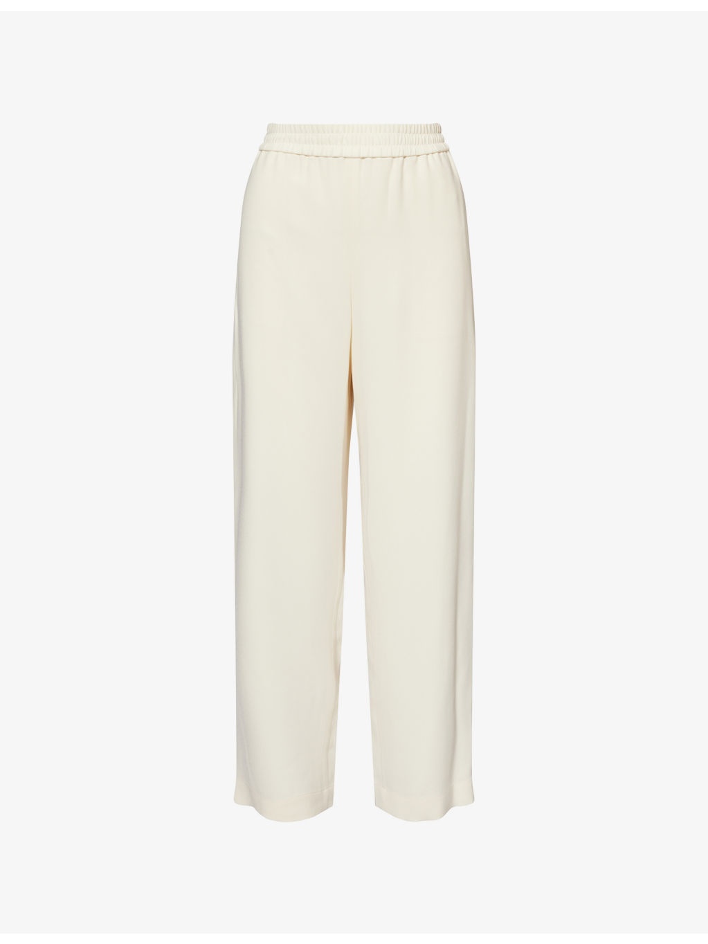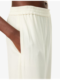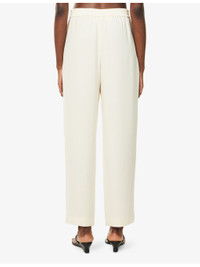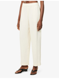PRODUCT DETAILS - Theory woven trousers - 77% triacetate, 23% polyester; lining 100% polyester - Relaxed fit, high-rise, wide leg, drawstring waistband, all-over crepe texture, fully lined - Dry clean - True to size - Size small: rise 13in / 34cm, inside leg 29in / 74cm, leg opening 16in / 41cm - Model is 5ft 10in/1.78m and wears a size small - Lightweight, stretchy Ref: R04490879