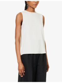 PRODUCT DETAILS - Theory silk top - 100% silk - Hook-and-eye fastening at back - Regular fit, round neckline, sleeveless, keyhole at back, soft crepe texture - Dry clean only - True to size - Size small: length 24in / 61cm - Model is 5ft 10in/1.78m and wears a size small - Lightweight, non-stretch
