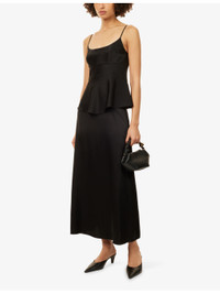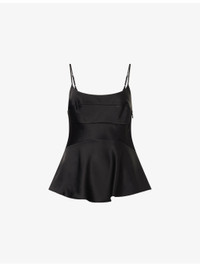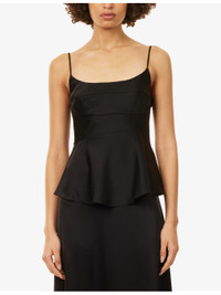 PRODUCT DETAILS - Theory satin top - 87% triacetate, 13% polyester - Concealed zip fastening at side - Regular fit, scoop neck, adjustable spaghetti straps, peplum waist - Dry clean - True to size - Model is 5ft 10in/1.78m and wears a size UK 8 - Lightweight, non-stretch Ref: R04560716