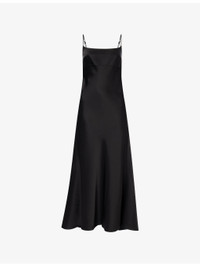 PRODUCT DETAILS - Theory satin slip dress - 87% triacetate, 13% polyester - Concealed zip fastening at side - Regular fit, square neck, adjustable spaghetti straps, lined unwired bust, flared skirt, maxi length - Dry clean - True to size - Size UK 8: length 52in / 132cm - Model is 5ft 10in/1.78m and wears a size UK 8 - Lightweight, non-stretch Ref: R04560722