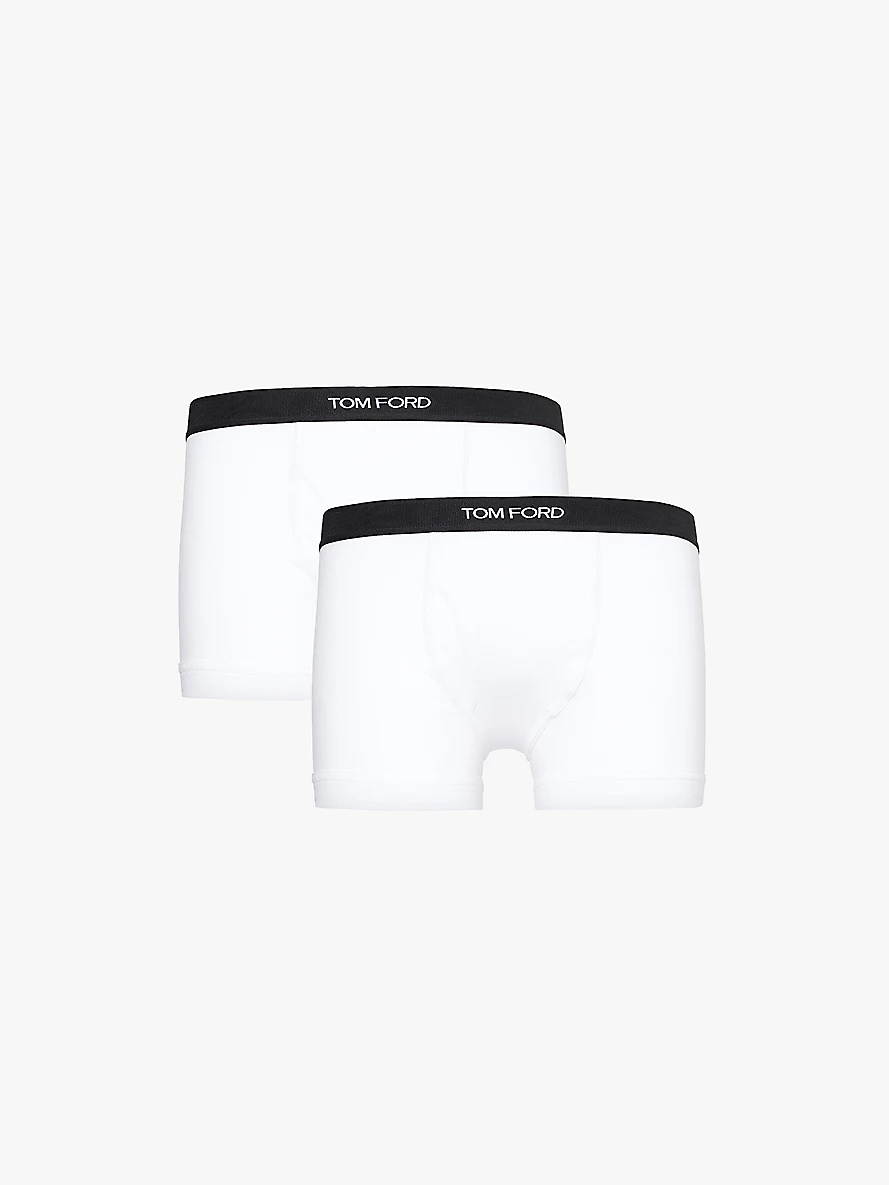 PRODUCT DETAILS - Tom Ford pack of two stretch-cotton trunks - 95% cotton, 5% elastane - Pulls on - Mid-rise, branded elasticated waistband, supportive panel at front - Machine wash cold - Model is 6ft 2in/1.88m and wears a size medium - Lightweight, stretchy - For hygiene reasons, we are unable to exchange or refund this product, unless faulty. Ref: R04345483