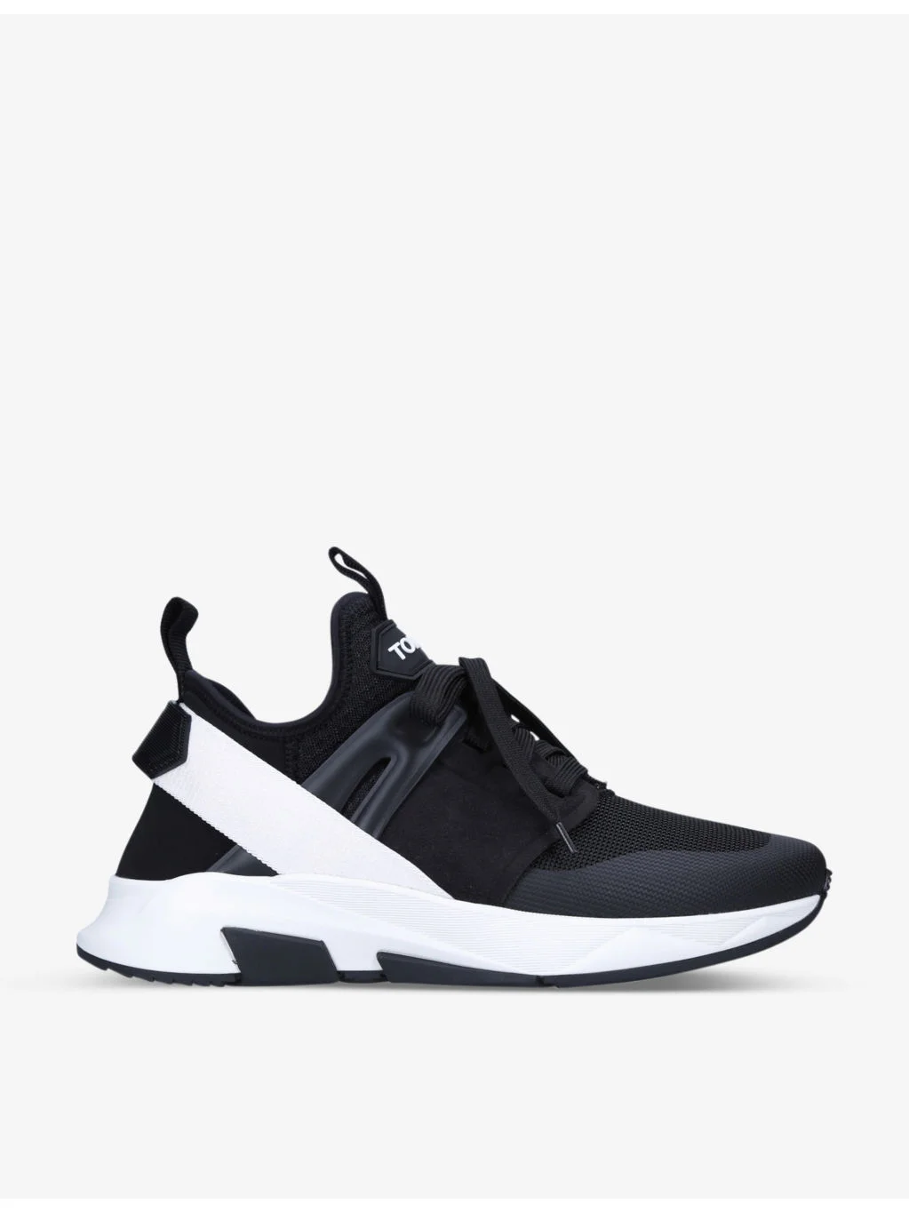 PRODUCT DETAILS - Tom Ford shell and mesh trainers - 50% cotton, 50% nylon - Lace-up fastening - Sock opening, elasticated strap at back of the heel, block panelled colouring, signature rubberised logo plaque on tongue, two grosgrain pull tabs to the tongue and ankle - Wipe with a clean, dry cloth - Made in Italy - Upper: 50% cotton, 50% nylon - Lining: 100% cotton - Sole: 100% rubber Ref: R03865712