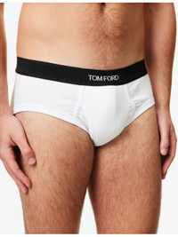 PRODUCT DETAILS - Tom Ford stretch-cotton briefs - 95% cotton, 5% elastane - Pulls on - Low rise, branded elasticated waistband, supportive pouch at centre front, abstract pattern - Machine wash cold - Model is 6ft 1in/1.85m and wears a size medium - Lightweight, stretchy Ref: R00000454