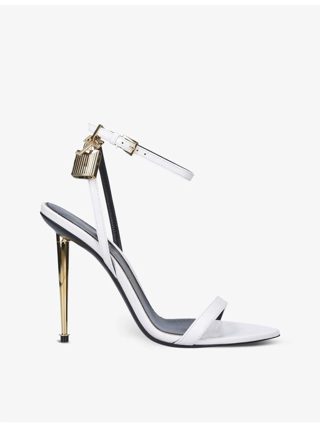SHINY LEATHER PADLOCK POINTY NAKED SANDAL