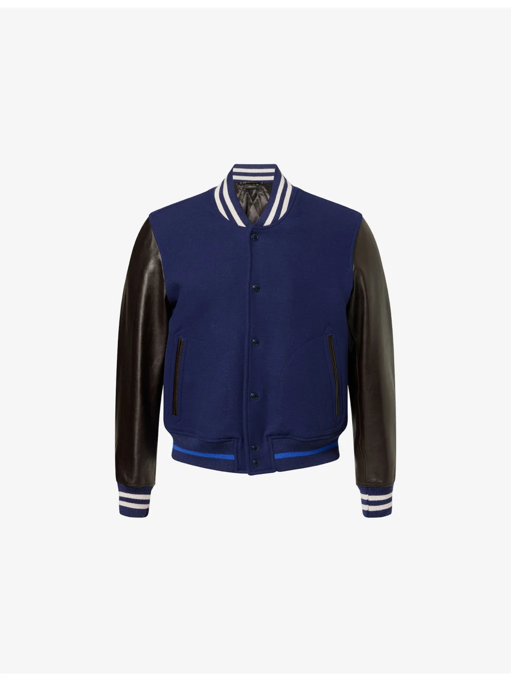 VARSITY BOMBER WITH LEATHER SLEEVES