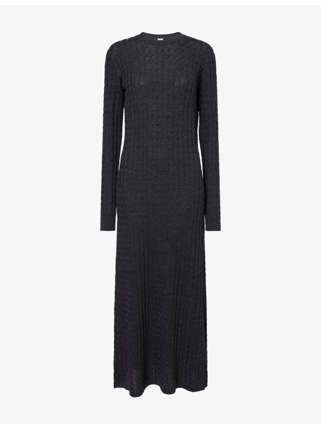PRODUCT DETAILS - Toteme wool maxi dress - 100% wool - Slim fit, round-neck, long sleeves, all-over cable-knit pattern, ribbed trims - Hand wash cold - True to size - Size small: length 53in / 135cm - Model is 5ft 10in/1.78m and wears a size small - Midweight, stretchy Ref: R04572952