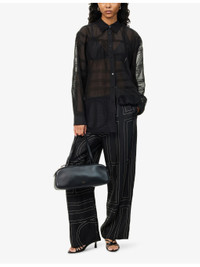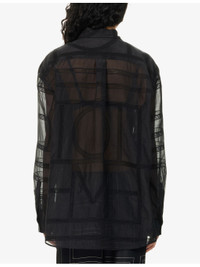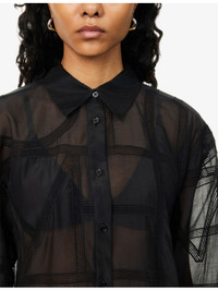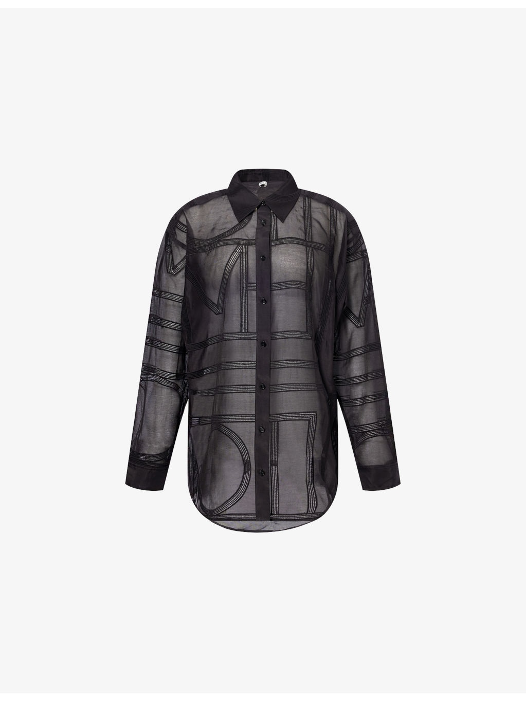 PRODUCT DETAILS - TOTEME silk-cotton blend shirt - 65% cotton, 35% silk - Exposed button fastening at front - Pointed collar, semi-sheer, long sleeves, buttoned cuffs, all-over embroidered detailing, curved hem - Dry clean - True to size - Size UK 8: length 26.5in / 67.5cm - Model is 5ft 10in/1.78m and wears a size UK 8 - Lightweight, non-stretch Ref: R04471209