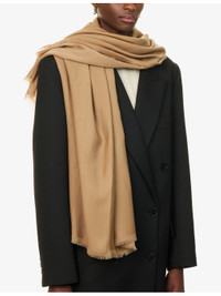 PRODUCT DETAILS - TOTEME wool scarf - 100% virgin wool - Rectangle shape, frayed trim to ends, brand patch at corner - Length 160cm, width 70cm - Dry clean only - Made in Italy - Lightweight, non-stretch Ref: R04471192