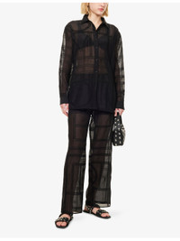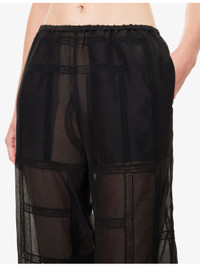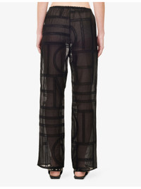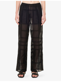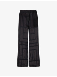 PRODUCT DETAILS - TOTEME cotton and silk trousers - 65% cotton, 35% silk - Relaxed fit, high-rise, wide leg, elasticated waistband, two slip pockets at front, all-over monogram crochet-embroidery, semi-sheer - Dry clean - True to size - Size UK 8: rise 14in / 36cm, inside leg 28in / 72cm, leg opening 20in / 51cm - Model is 5ft 10in/1.78m and wears a size UK 8 - Lightweight, slight stretch Ref: R04471218