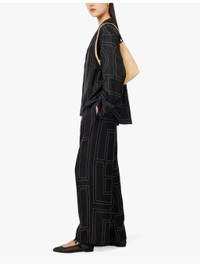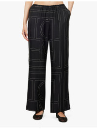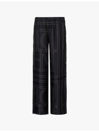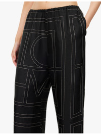 PRODUCT DETAILS - Toteme silk trousers - 100% silk - Relaxed fit, mid-rise, wide leg, drawstring elasticated waistband, slip pockets at front, monogram pattern - Dry clean only - True to size - Model is 5ft 10in/1.78m and wears a size UK 8 - Lightweight, non-stretch Ref: R04342155