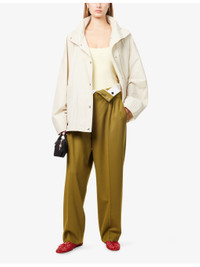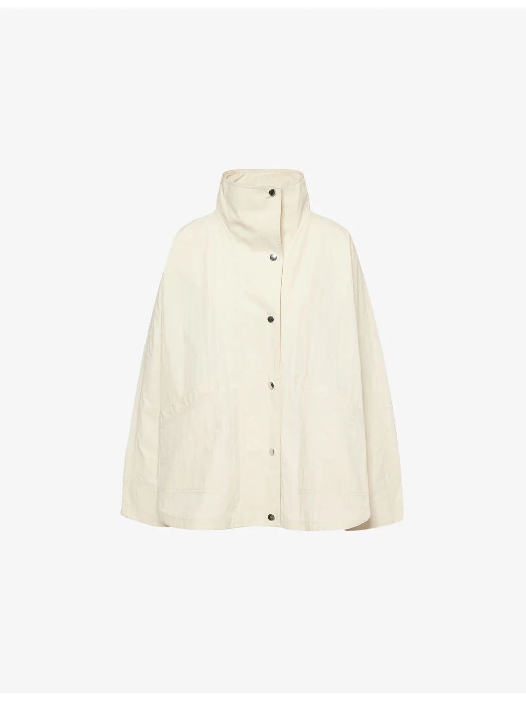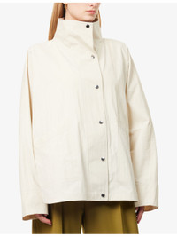 PRODUCT DETAILS - TotemeCotton-Blend Jacket - 60% cotton, 40% polyamide - Spring ring clasp fastening - Wide loose fit, high neck, long sleeves, front patch pockets, unlined, lightweight, branded hardware - Machine wash mild - Size UK 8: length 30in / 76.2cm - Model is 5ft 10in/1.78m and wears a size UK 8 - Lightweight, non-stretch Ref: R04471194