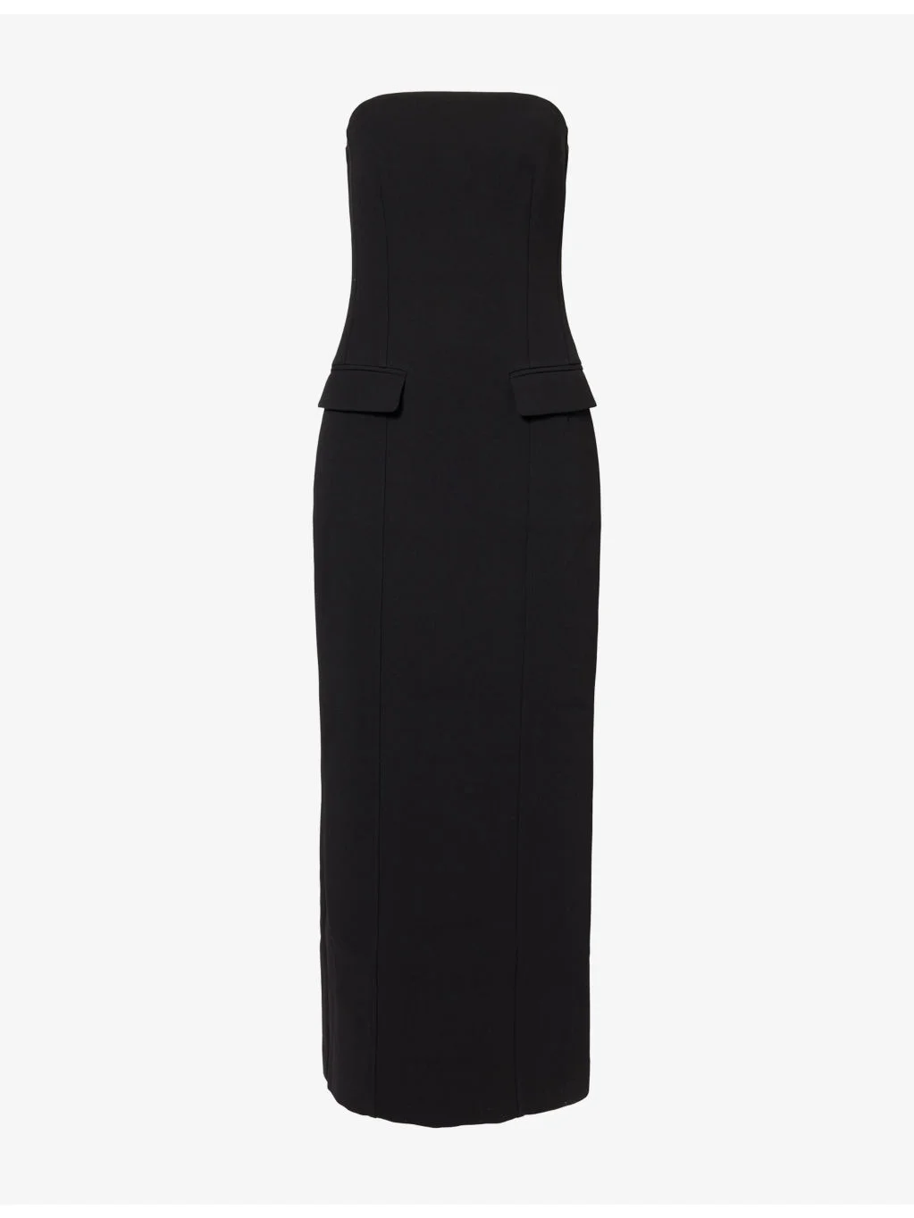 PRODUCT DETAILS - Toteme woven maxi dress - 100% polyester; lining 100% polyester - Concealed zip fastening at back - Slim fit, curved neckline, strapless, structured top, two flap pockets at front, darts at front and back, all-over crepe texture, fully lined, split at back - Dry clean - True to size - Size UK 8: length 49in / 125cm - Model is 5ft 10in/1.78m and wears a size UK 8 - Midweight, stretchy Ref: R04572950