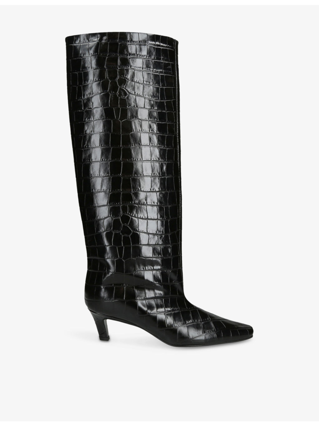 PRODUCT DETAILS - TOTEME leather knee-high boots - 100% leather - Knee high, square closed toe, wide-cut brims, stiletto heel, all-over croc effect, glossy finish - Heel height 55mm / 2in - Specialist leather clean - Upper: 100% leather - Lining: 100% leather - Sole: 100% leather Ref: R04508155