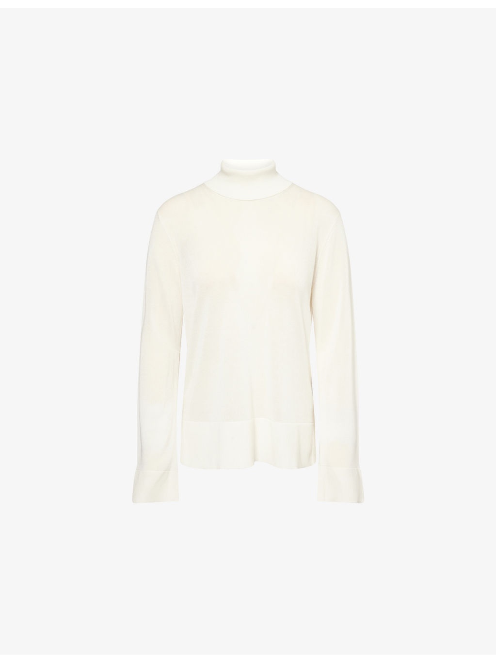 PRODUCT DETAILS - Toteme Fine-Knit Jumper - 88% lyocell, 10% cashmere, 2% polyamide - Regular fit, roll neck, long sleeves, ribbed trims, fine know, side split hems - Hand wash - Model is 5ft 10in/1.78m and wears a size small - Lightweight, stretchy Ref: R04471199