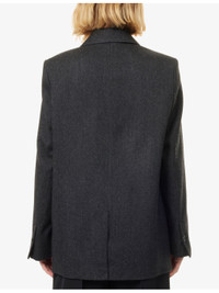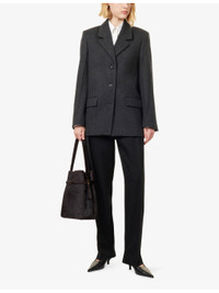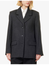 PRODUCT DETAILS - Toteme wool jacket - 100% wool; lining 100% viscose - Exposed button fastening at front - Relaxed fit, single-breasted, notch lapels, padded shoulders, long sleeves, buttoned cuffs, two flap pockets at front, all-over twill texture, fully lined, single vent - Dry clean - True to size - Size UK 8: length 30in / 77cm - Model is 5ft 10in/1.78m and wears a size UK 8 - Midweight, stretchy Ref: R04572968