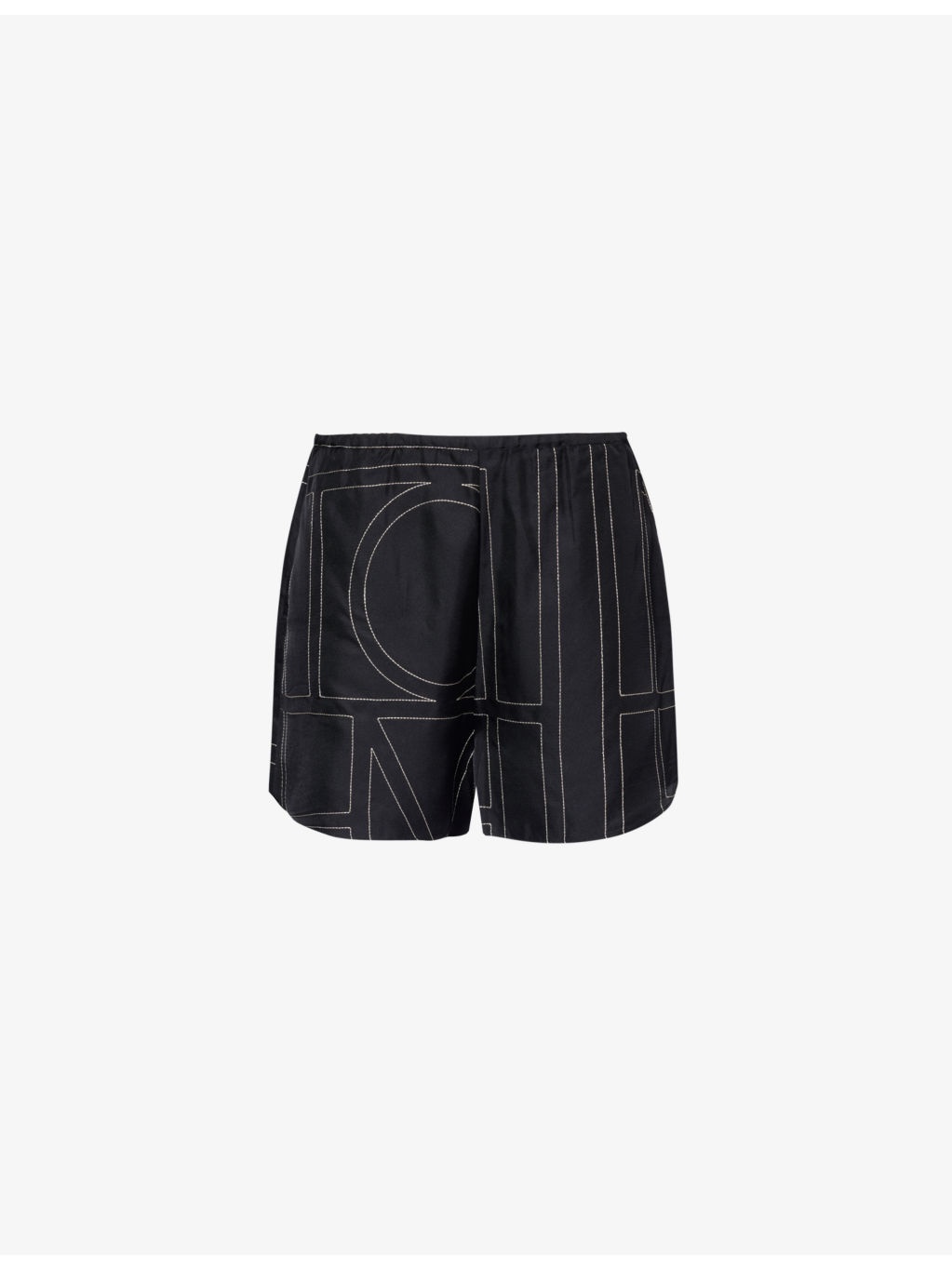 PRODUCT DETAILS - TOTEME silk-twill shorts - 100% silk - Slips on - Relaxed fit, high rise, wide leg, elasticated waistband, slip pockets at sides, all-over brand embroidery - Dry clean only - True to size - Size UK 8: rise 13in / 33cm, inside leg 3in / 7.5cm, leg opening 28in / 71cm - Model is 5ft 10in/1.78m and wears a size UK 8 - Midweight, non-stretch Ref: R04321557