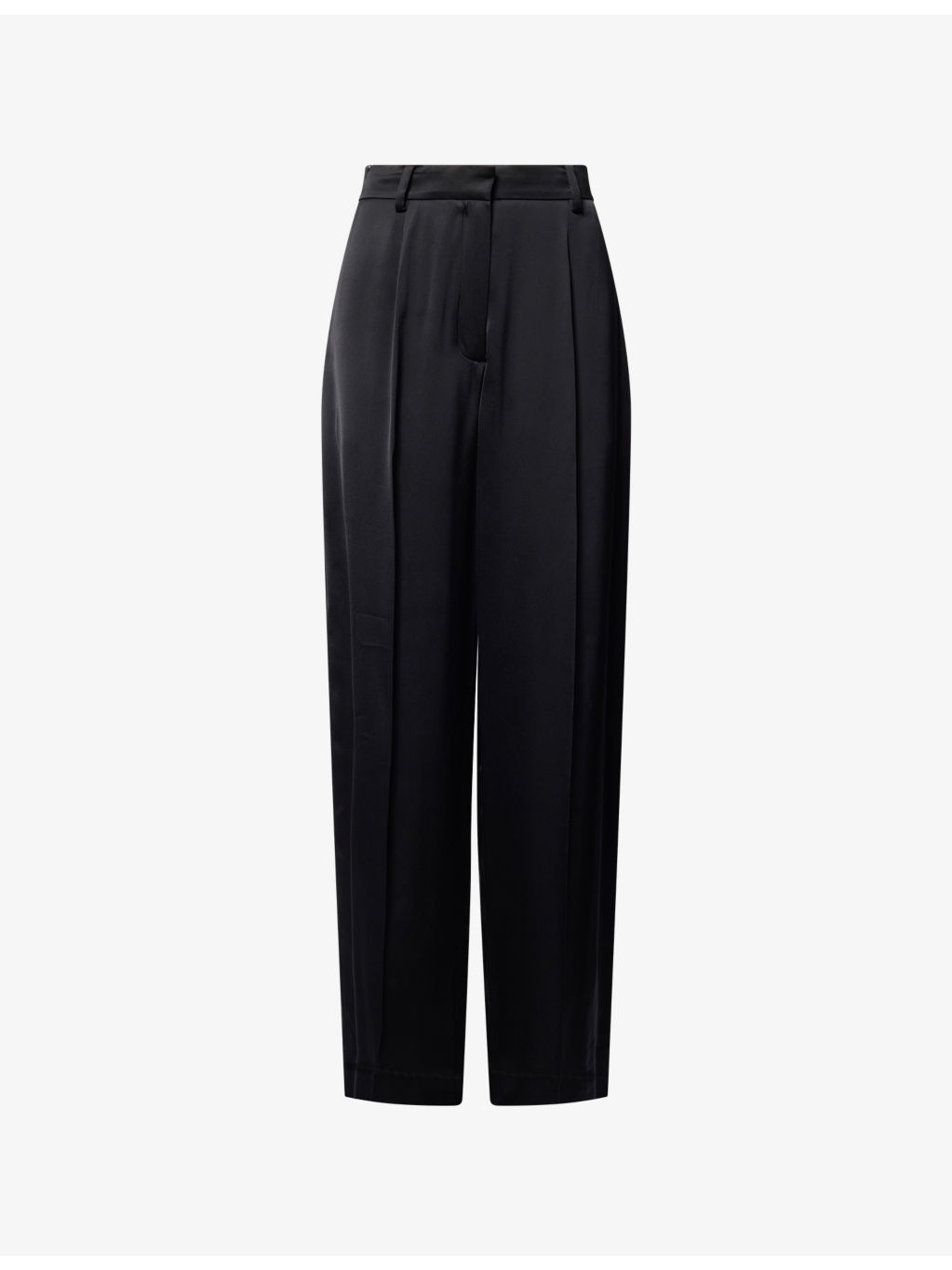 PRODUCT DETAILS - Toteme woven trousers - 100% viscose - Concealed button, hook-and-eye and zip-fly fastening at front - Relaxed fit, high-rise, wide leg, belt loops, two slip pockets and pleated at front, two buttoned pockets at back, all-over satin texture - Hand wash cold - True to size - Size UK 8: rise 13in / 34cm, inside leg 31in / 80cm, leg opening 22in / 56cm - Model is 5ft 10in/1.78m and wears a size UK 8 - Lightweight, slight stretch Ref: R04513876