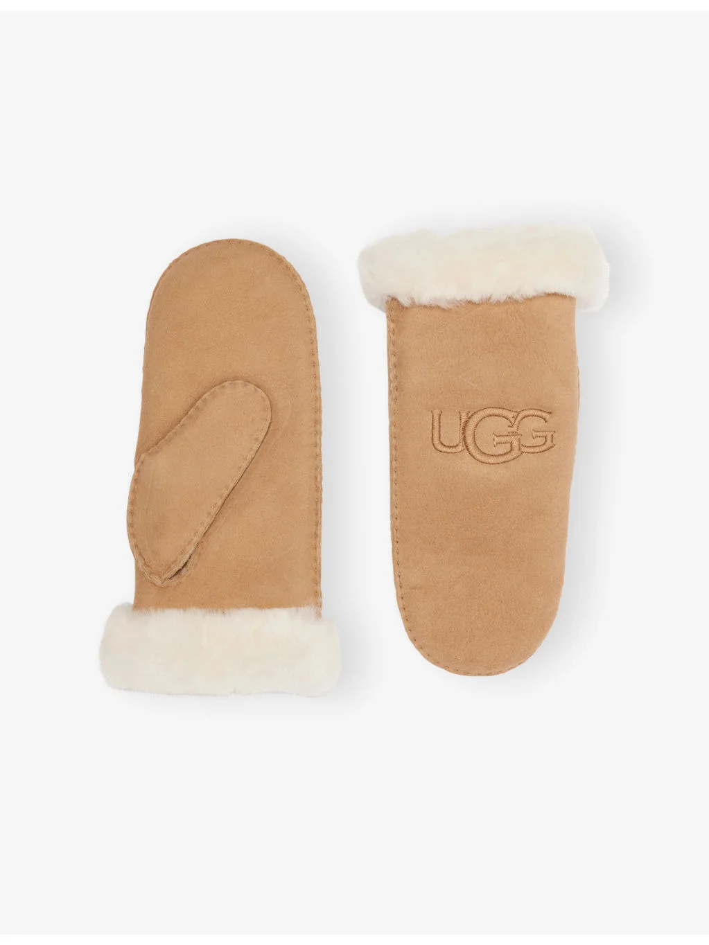 PRODUCT DETAILS - UGG sheepskin mittens - 100% sheep leather - Shearling trim at cuff, brand embroidery at front, hand sewn, water-resistant finish - Specialist leather clean - Heavyweight, non-stretch Ref: R04517212