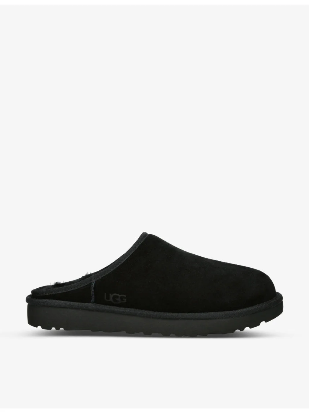 PRODUCT DETAILS - UGG suede slippers - 100% suede - Slips on - Round closed toe, logo at side, sheepskin lining, tread sole - Specialist leather clean - Upper: 100% suede - Lining: 100% sheepskin - Sole: 100% EVA