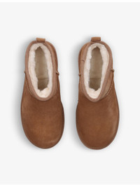 PRODUCT DETAILS - UGG suede and shearling boots - Slips on - Ankle height, round toe, exposed piping, pull tab at back, branded patch at back, fully lined, platform sole - Heel height 2"" platform - Specialist leather clean - Upper: 100% lambskin - Lining: 80% wool, 20% lyocell - Sole: 100% rubber Ref: R04077117