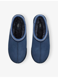 PRODUCT DETAILS - UGG suede slippers - 100% suede - Closed round toe, braided trim at collar, heat-embossed UGG® logo at side, sheepskin insole, woven label with UGG® logo on insole - Specialist leather clean - Upper: 100% suede - Lining: 100% sheepskin - Sole: 100% EVA Ref: R04536335