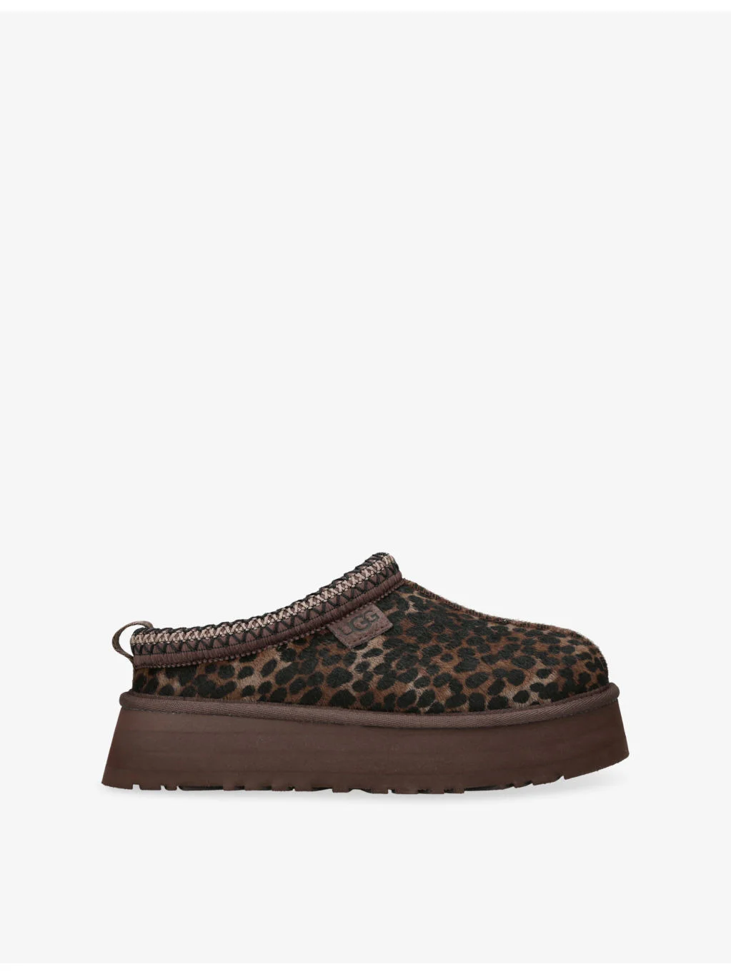 PRODUCT DETAILS - UGG calf-hair slippers - 100% calf-hair leather - Closed round toe, leopard-print upper, braided trim at collar, brand patch at side, UGGplush insole, EVA midsole - Specialist leather clean - Upper: 100% calf-hair leather - Lining: 60% wool, 40% lyocell - Sole: 100% EVA Ref: R04517268
