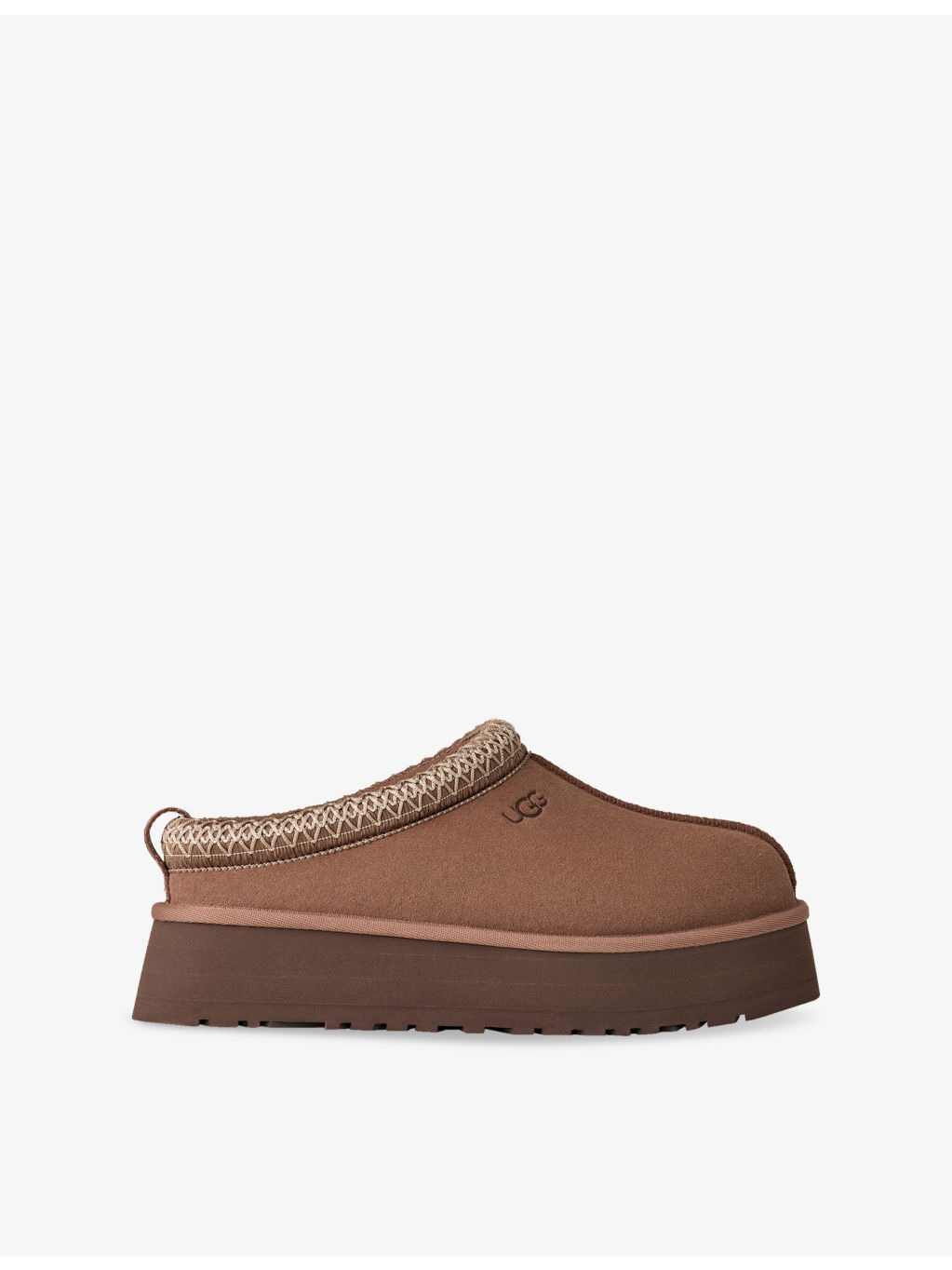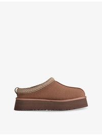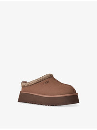 PRODUCT DETAILS - UGG suede slippers - 100% suede - Round toe, platform sole, heat-embossed UGG® logo at side, sheepskin insole, woven label with UGG® logo on insole - Sole height 1.75inch - Specialist leather clean - Upper: 100% suede - Lining: 100% sheepskin - Sole: 100% EVA Ref: R04517265