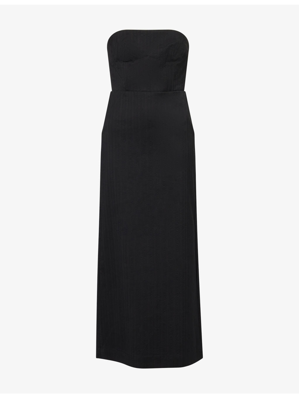 PRODUCT DETAILS - Uma Wang stretch-wool blend midi dress - 69% virgin wool, 28% viscose, 2% elastane, 1% cotton - Exposed button fastening and concealed hook-and-eye fastening at front - Regular fit, curved neckline, strapless, corset boning, high-waist, all-over striped print, split at back - Hand wash cold - Made in Italy - True to size - Size small: length 44in / 113cm - Model is 5ft 10in/1.78m and wears a size small - Lightweight, stretchy Ref: R04507935