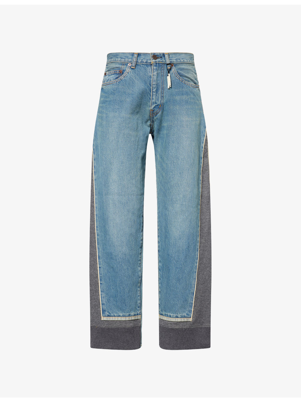 PRODUCT DETAILS - Undercover denim jeans - 100% cotton - Button and zip-fly fastenings at front - Regular fit, mid-rise, straight leg, belt loops, five pockets, contrasting side panels - Hand wash - Made in Japan - True to size - Size 1: rise 11in / 28cm, inside leg 28in / 71cm, leg opening 16in / 41cm - Model is 5ft 10in/1.78m and wears a size 2 - Midweight, non-stretch Ref: R04496810
