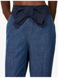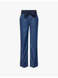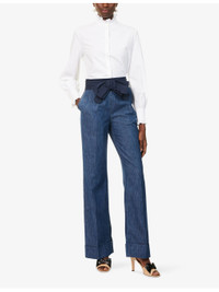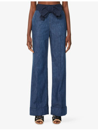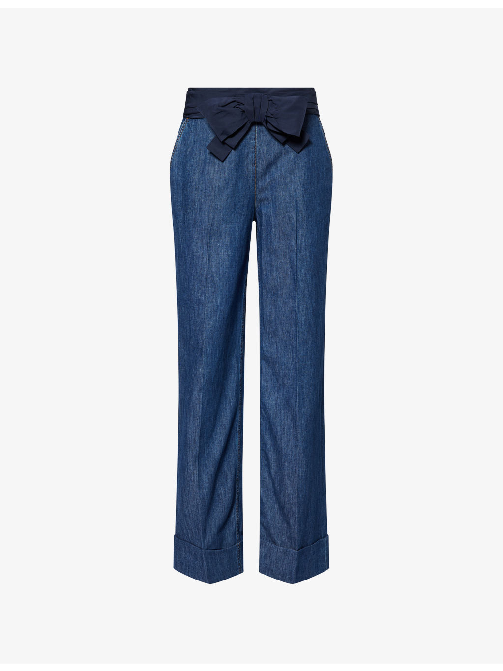 PRODUCT DETAILS - Valentino Garavani denim jeans - 100% cotton; contrast 54% cotton, 46% polyester; pocketlining 65% polyester, 35% cotton; trims 54% cotton, 46% polyester - Concealed zip fastening at side - Regular fit, high-rise, structured waistband with bow embroidery, wide leg, two side slip pockets, two rear welt pockets, contrast stitching - Specialist dry clean - Made in Italy - True to size - Size UK 8: rise 11in / 28cm, inside leg 34in / 87cm, leg opening 21in / 53cm - Model is 5ft 10in/1.78m and wears a size UK 8 - Lightweight, non-stretch Ref: R04462379