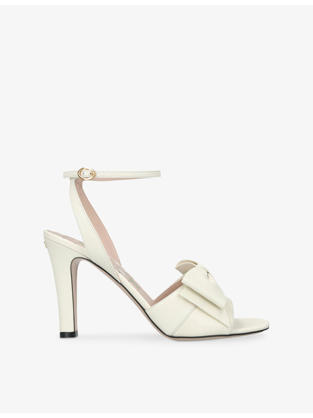 PRODUCT DETAILS - Valentino Garavani leather heeled sandals - 100% leather - Ankle-buckle fastening - Open round toe, adjustable ankle strap, cut-out sides, bow at front - Heel height 95mm / 3.7in - Specialist leather clean - Upper: 100% leather - Lining: 100% leather - Sole: 100% leather Ref: R04473742