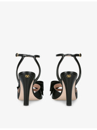 PRODUCT DETAILS - Valentino Garavani leather heeled sandals - 100% leather - Ankle-buckle fastening - Open round toe, adjustable ankle strap, cut-out sides, bow at front - Heel height 95mm / 3.7in - Specialist leather clean - Upper: 100% leather - Lining: 100% leather - Sole: 100% leather Ref: R04473741