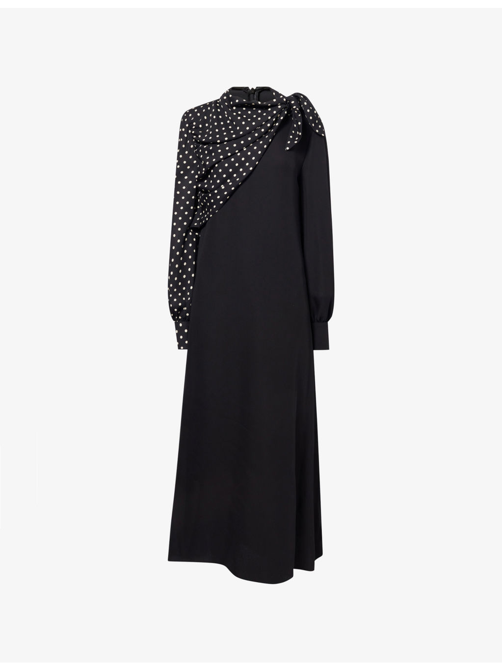 PRODUCT DETAILS - Valentino Garavani silk maxi dress - 100% silk; contrast 100% silk - Concealed zip fastening at back - Regular fit, mock neck, tie fastening at neck, long sleeves, polka-dot scarf embellishment, buttoned cuffs, maxi length - Specialist dry clean - Made in Italy - True to size - Size UK 8: length 48in / 121cm - Model is 5ft 10in/1.78m and wears a size UK 8 - Lightweight, non-stretch Ref: R04505641