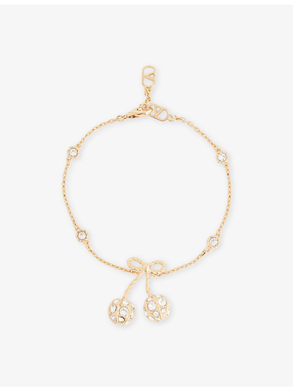 PRODUCT DETAILS - Valentino Garavani metal and Swarovski crystal bracelet - 100% metal; stones 10 swarovski crystals - Lobster-clasp fastening - Fine link chain, all-over crystal embellishment, central cherry design plaque, crystal pave setting, gold-toned, polished finish, adjustable length - Chain length: 20.5cm - Chain width: 2mm - Made in Italy - Please use a soft, dry polishing cloth - Comes with a dust bag, presented in a box Ref: R04510835
