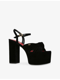 PRODUCT DETAILS - Valentino Garavani velvet platform sandals - 100% velvet - Ankle-buckle fastening - Round open toe, twisted strap, branded details, platform heel and sole - Heel height 4.9"" - Wipe with a clean, dry cloth - Upper: 100% velvet - Lining: 100% leather - Sole: 100% leather Ref: R04551149