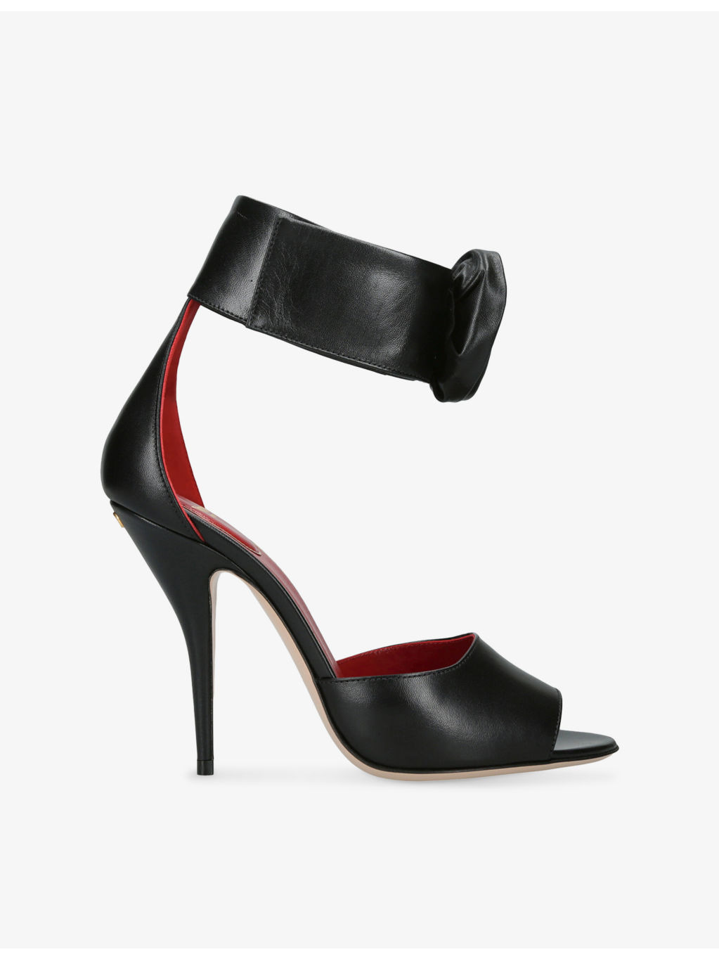 PRODUCT DETAILS - Valentino Garavani leather heeled sandals - 100% leather - Hook-and-loop tape fastening - Round open toe, crystal-embellished rose applique at front, branded footbed, covered stiletto heel - Heel height 105mm / 4.13in - Specialist leather clean - Made in Italy - Upper: 100% leather - Lining: 100% leather - Sole: 100% leather Ref: R04511904