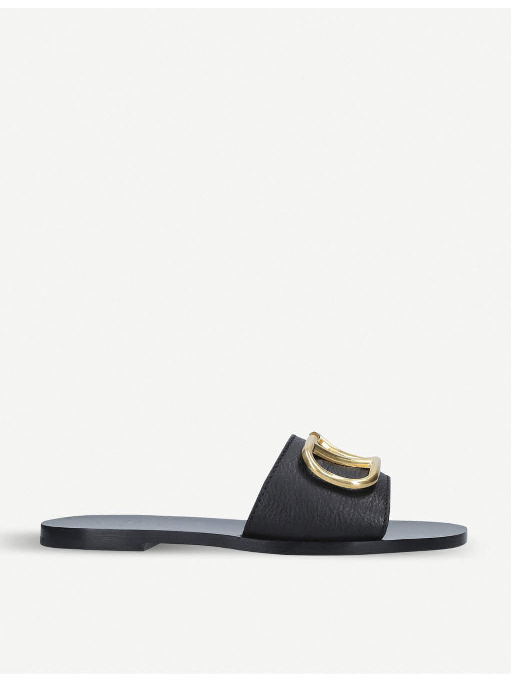 VLOGO SIGNATURE SLIDE SANDAL IN GRAINY COWHIDE WITH ACCESSORY