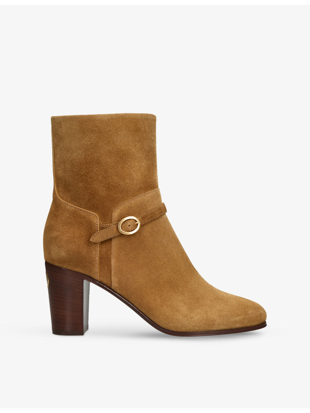 Pattie 75 buckle-embellished suede ankle boots Tan