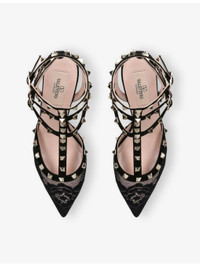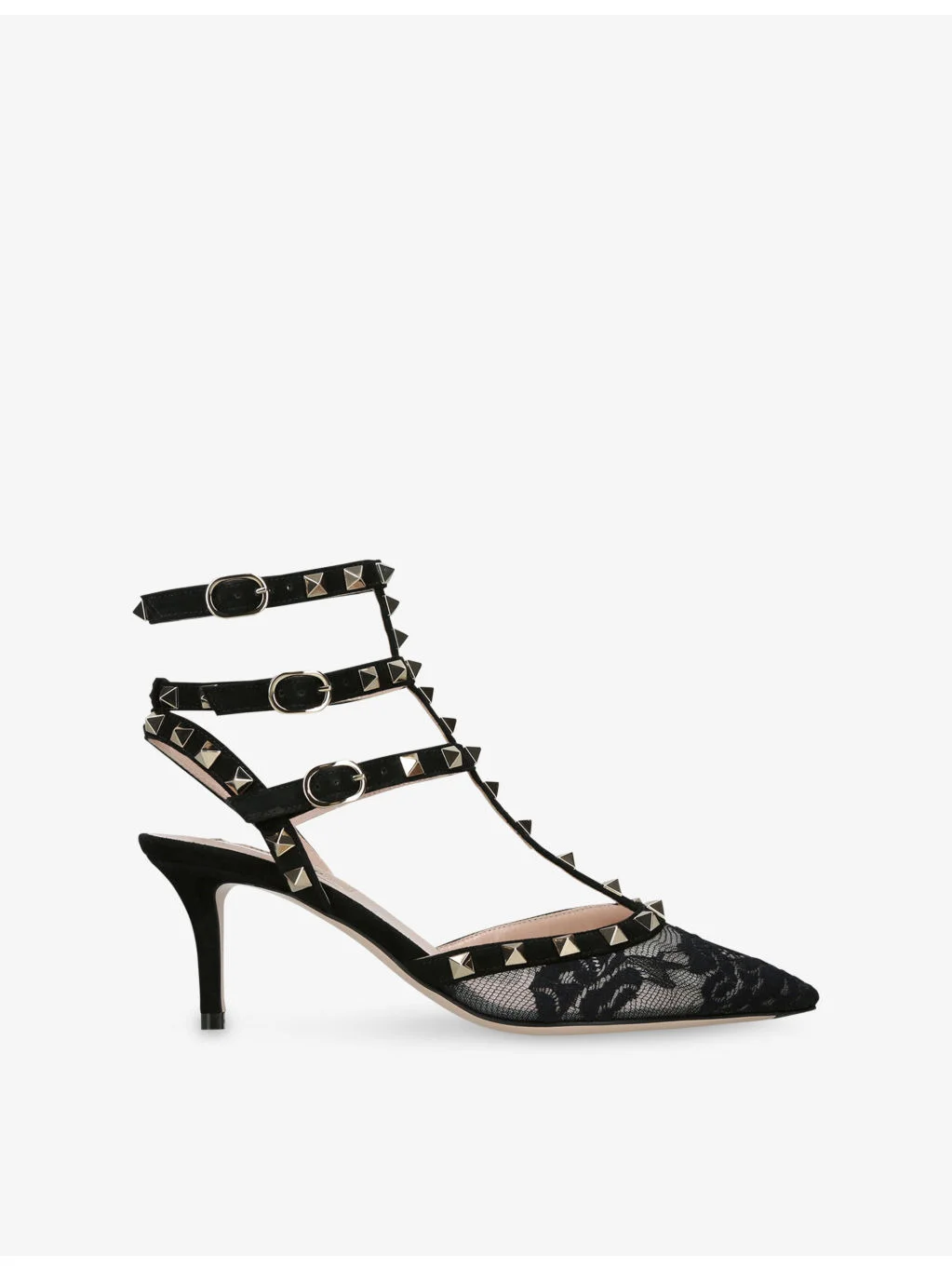 PRODUCT DETAILS - Valentino Garavani lace courts - 100% synthetic - Ankle-buckle fastening - Pointed toe, high heel, strappy design, floral lace, rockstud embellishment - Heel height 2.5"" - Specialist clean - Upper: 100% synthetic - Lining: 100% leather - Sole: 100% leather Ref: R04511973
